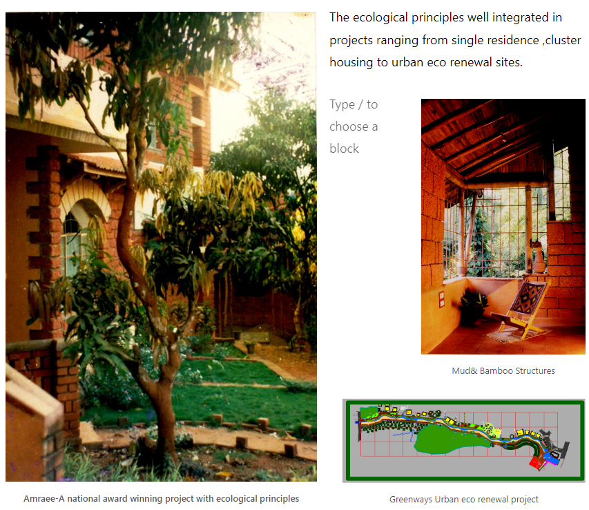 The ecological principles well integrated in projects ranging from single residence ,cluster housing to urban eco renewal sites.