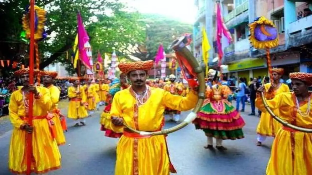 The other festivals are Shigmo, Dhalo, Dhendlo, however it is Ganesh utsav which is when the musical instruments are widely used. In villages Groups of youngsters practice to perform Ghumat Arati in front of Ganesh. Now it is widely established to have such performances in Sarvajanik Ganesh Utsav as it offered many budding artists a wider audience.